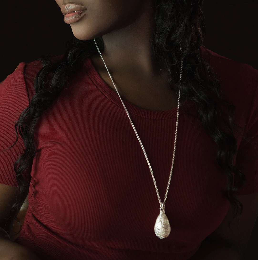 In geschlossenem Zustand ist es kaum zu sehen, doch der Anhänger kann aufgeklappt werden, sodass seine Besitzerin kleine Kostbarkeiten darin verstecken kann. Ein ausgefallener, großer und trotzdem zarter Anhänger für Frauen, die das Besondere schätzen.