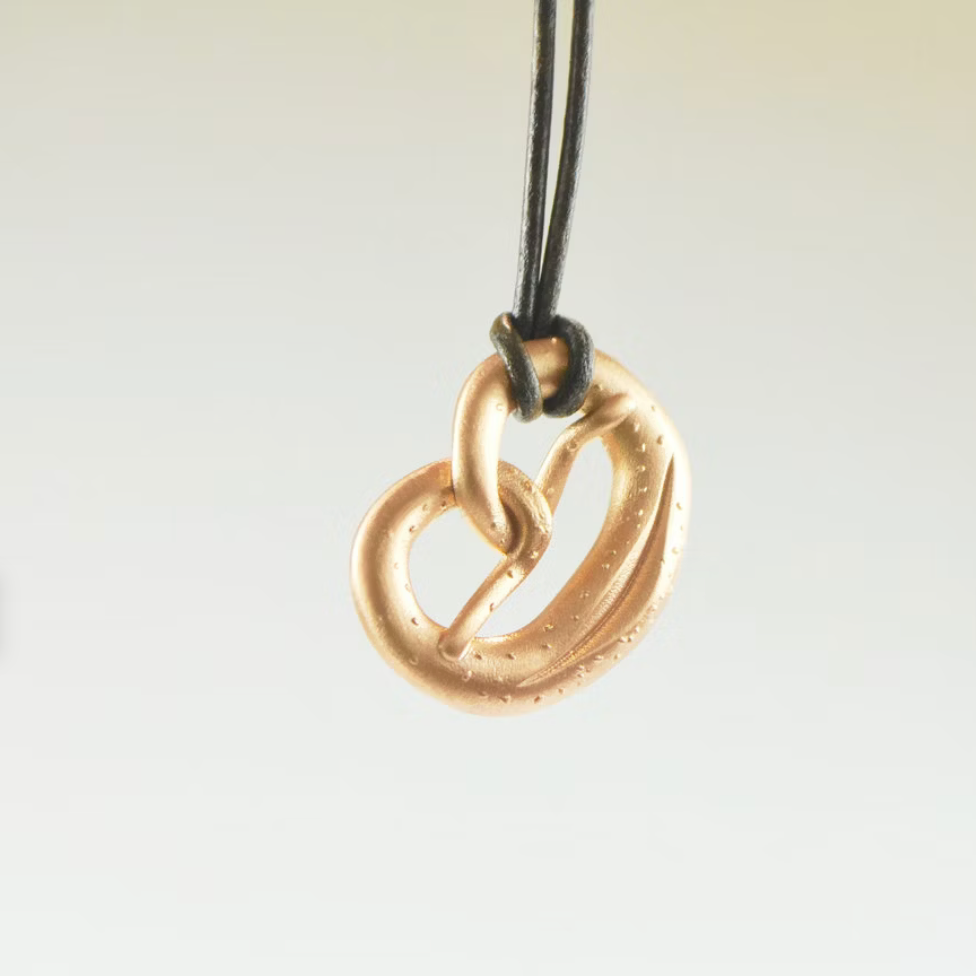 Unser Brezn Anhänger schmiegt sich zum Anbeißen schön an jedes Dekolleté. Ob als Accessoire zur Lederhose, zum Dirndl oder zum Alltagsoutfit - damit bist du mit Sicherheit der Hingucker.