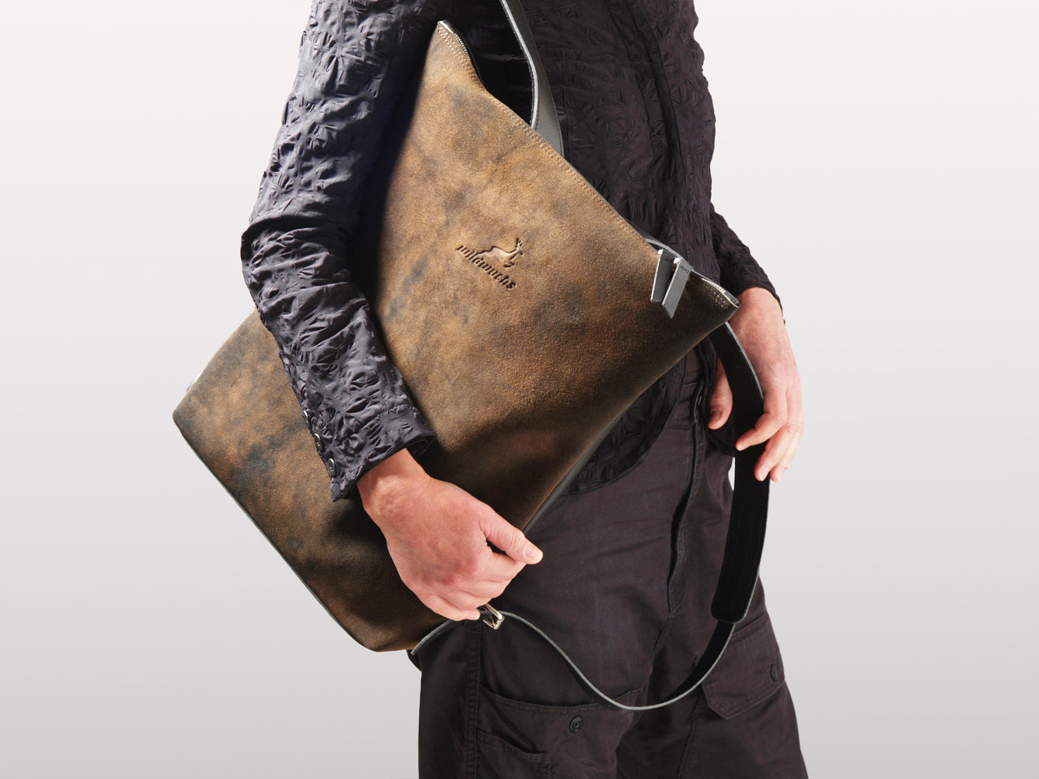 Ackermann Bodybag | MARSEILLE aus grau-grünem Hirschleder